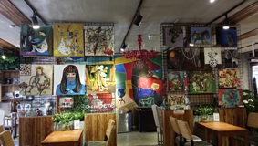 此次展览作品主要包括两大类:综合材料类作品共26件,体裁有表现主义人物绘画、立体派静物绘画、超现实主义绘画和抽象主义绘画等,所用材料包括纸浆、石子、沙子、水泥、木头、麻绳、玻璃等。色彩类作品共27件,体裁有抽象表现主义静物、任务绘画、表现主义风景绘画、超现实主义绘画等,尤其突破性的出现一批用钉子组成的绘画作品,视觉效果强烈、制作精良,完全符合现代高层次软装饰艺术品的要求。这批作品在展览现场引起大众强烈兴趣和广泛关注,深得中青年层次人群的喜好。在咖啡厅展览使作品与环境很好的融合为一体,更好的提高了作品的视觉效果,给人耳目一新之感。