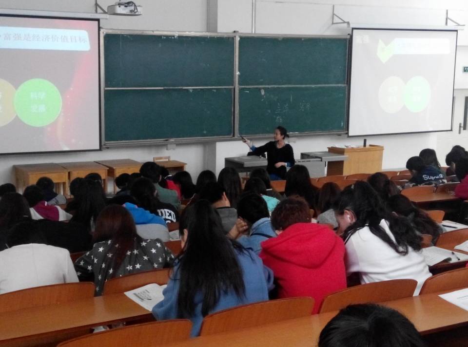 2015年4月4日在综合楼407、205由社会管理公司副经理王妮、美术公司党总支书记贾志明为公司2013级、2014级200多名员工讲授本学期《形势与政策》课程。