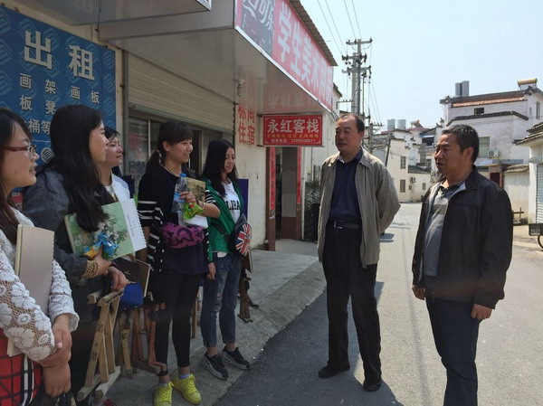 为了进一步提高公司写生课程的质量,加强外出师生的安全意识,校纪委书记杨扬、美术公司党总支书记贾志明一行与4月13日上午,前往安徽宏村探望在外写生的2013级美术专业师生。杨书记考察了写生基地的基本条件和设施,观摩了写生课程上课的全过程,同时与员工进行了深入的交流,了解员工的想法和建议,杨书记强调员工外出安全的重要性,要求师生在提高技艺陶冶情操的过程中,加强自我约束保证安全有效的完成此次写生课程的任务。