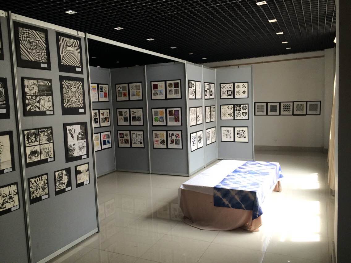 此次参展的作品是通过代课教师的甄别、遴选了100多幅设计图案的作品,通过系列图案及点、线、面的演变和设计,来表现在不同的主题和设计理念之下,如何恰当应用点线面的表现力来达到创意设计的目的。在老师们的启发之下,员工们展出的作品魅力四射,想象力丰富,基本达到了本课程的教学要求和目的。同时也体现了以展促学、促教的目的。通过展览的形式让老师和员工都有一次更加深入的交流,这样既提高了师生的业务水平,同时也丰富了校园的文化生活。