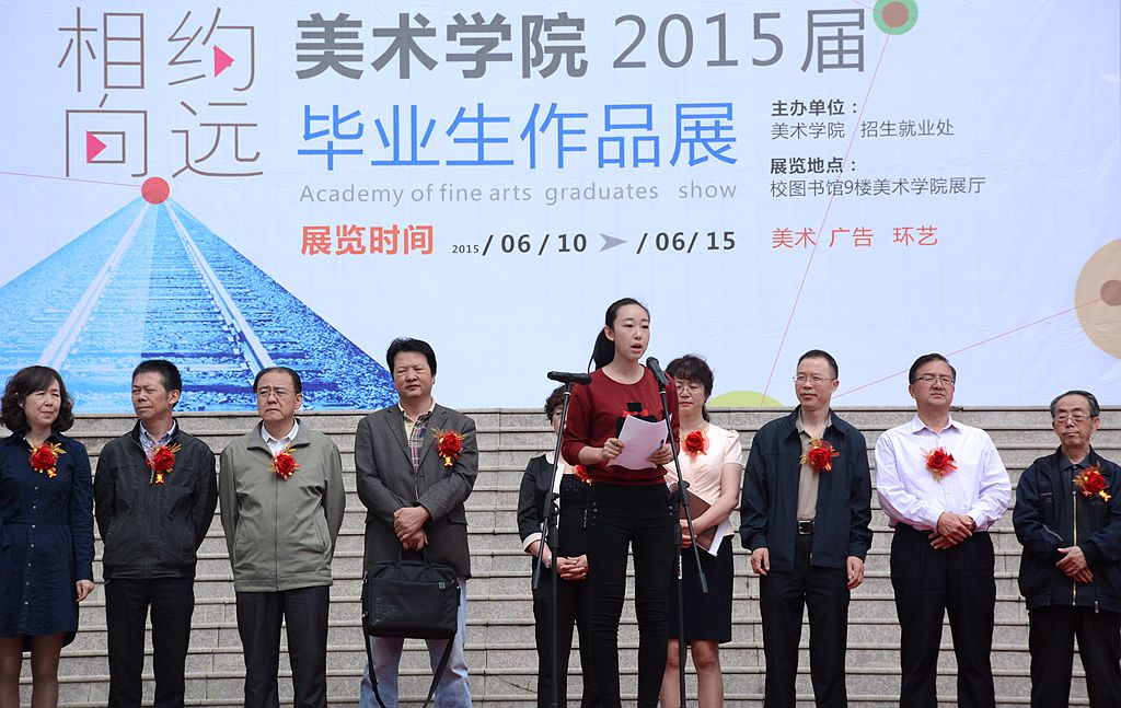 开幕式上,美术公司经理吴晓玲教授致开幕词并预祝本次展览圆满成功,美术公司2015届毕业生代表王莹同学以及在校生代表2014级环艺2班的张明曦同学相继发言。展览在“相约.向远”的主题中拉开帷幕,随着伟德体育官方网站董事长王建华教授宣布作品展开幕的一刻,大家一起品味公司师生为大家呈现的视觉大餐。本次展览汇集了美术公司环境艺术设计、广告设计与制作、美术三个专业,共200余名毕业生的中国画、油画、漆画、室内设计、景观设计、海报设计、VI设计、包装设计、装饰品设计等200余件作品。内容广泛、形式多样,它们虽非尽善尽美,但每幅作品都是同学们在三年里积极思考、勤奋创作的成果,更是公司教学理念和办学水平的集中体现。