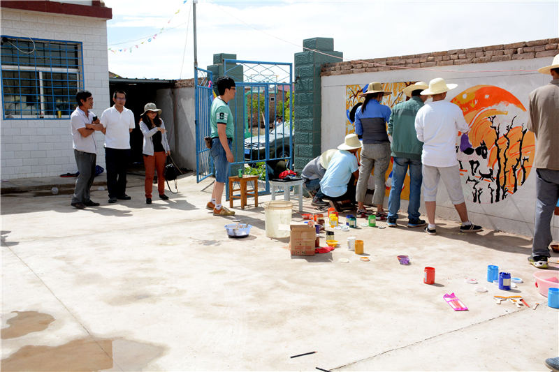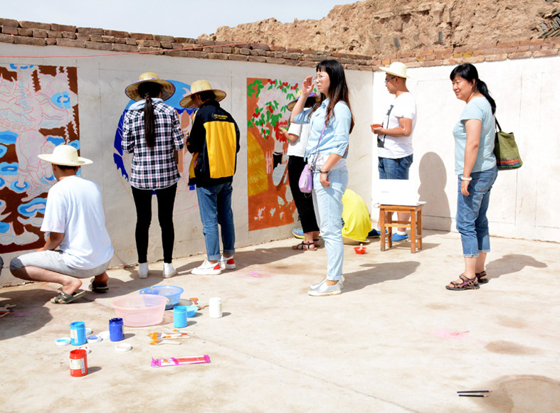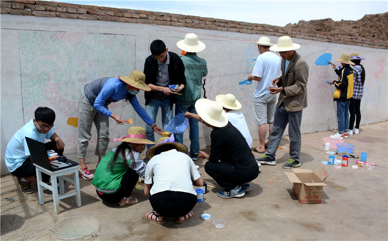暑期来临之际,美术公司党总支书记贾志明、学工办主任唐艳丽、辅导员匡扶、公司领导班子成员以及15名员工于7月16日赴古浪县直滩乡老城村参加社会实践活动,本次暑期社会实践小分队由15名员工骨干组成,紧紧围绕“联村联户,为民富民,美化乡村环境”的主题,依托自身专业优势,通过文化墙绘的形式,深入乡村开展了以文化艺术进农村、政策宣传为内容的美化乡村活动。