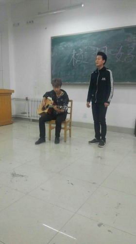 比赛准时开始,广告设计专业的同学以一首吉他弹唱《姑娘》将气氛带动起来。时而低沉婉转,时而沧桑悲凉,独特的嗓音让在场同学听得如痴如醉。随后美术班的藏族同学,唱了一首藏歌,再一次展现了音乐的魅力,虽然语言不通,但是旋律是通用的语言,他用他的歌曲,让我们领略了藏民那淳朴善良的民风。