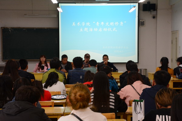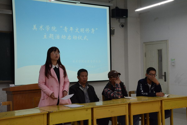 为了进一步贯彻员工处关于组织开展老员工文明修身主题活动的文件精神,增强公司青年员工文明礼仪修养,提高员工自身的思想道德素质,全面推进公司学风建设。2016年4月7日,美术公司青年文明修身主题活动启动仪式在3#504举行,公司党总支书记贾志明、学工办主任唐艳丽、辅导员匡扶、员工会全体成员以及各班级班委、党员和入党积极分子80多人参加了此次活动。