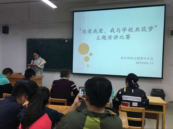 为了积极响应校团委“第三届丁香花开文化艺术节”的号召,2016年4月11日,美术公司在1#704举办题为“校荣我荣, 我与公司共筑梦”的演讲比赛。来自于公司不同年级的6个代表队以及15级的部分专业的员工30多人参加了此次活动。