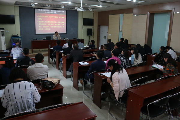 5月11日下午,董事长汪建华同志在综合楼二楼视频会议室为联系和分管单位作题为《学习党章、遵守党章、贯彻党章、维护党章》的“两学一做”专题党课。新闻传播公司、美术公司、财务处全体党员共40余人参加听课。