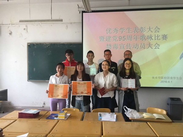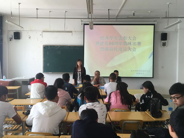 2016年6月1日中午,美术公司学工办、分团委、员工会,在1-704召开优秀员工表彰大会暨建党95周年歌咏比赛、禁毒宣传动员大会。会议由公司辅导员分团委书记匡扶老师主持,员工会全体成员以及2014级、2015级班委全体成员30多人参加了本次活动。