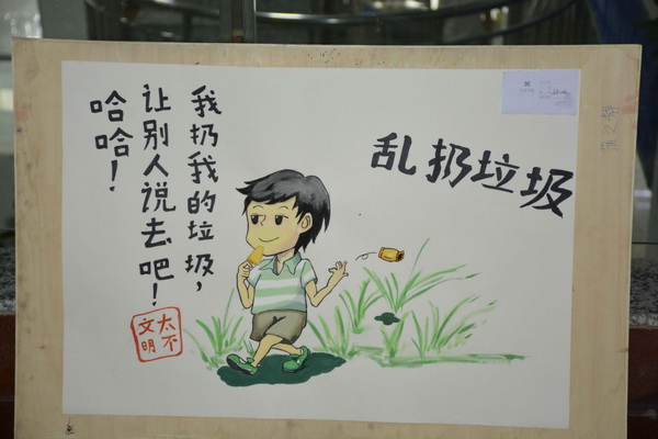 本次书作品画展,由美术公司员工会组织2015级各班级同学,结合班级主题活动创作“文明修身”主题漫画20多幅,本公司参加书法协会的同学撰写书法作品20多幅,在公司分团委老师的指导之下,遴选共展出书画作品40多幅。我公司展出的“拒绝不文明”漫画受到广大师生的一致好评,纷纷表示在以后的生活中要以不文明行为为诫,严格要求自己。