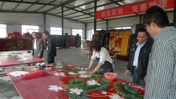 “天水雕漆”是国家级非物质文化遗产,是我省文化艺术中的瑰宝。天水飞天雕漆工艺家俱有限责任公司拥有甘肃省工艺美术大师6人,在全国漆器行业中规模和工艺都屈指可数。在挂牌仪式开始前,美术系王锡臻主任及其他随行教师与天水飞天雕漆工艺家俱有限责任公司朱良军总经理和非遗天水雕漆技艺传承人胡建生副总经理进行了座谈。座谈会上,公司领导对美术系领导和教师的到来表示了热烈的欢迎,朱总经理介绍了“天水飞天雕漆工艺家俱有限责任公司”创建及发展情况,并对与公司的合作提出了一些想法和建议。王主任对公司对公司美术系工作的支持表示了感谢。座谈会上,公司美术系与天水飞天雕漆工艺家俱有限责任公司初步达成了每年接受我系20名毕业生就业以及共同研制新产品的协议。