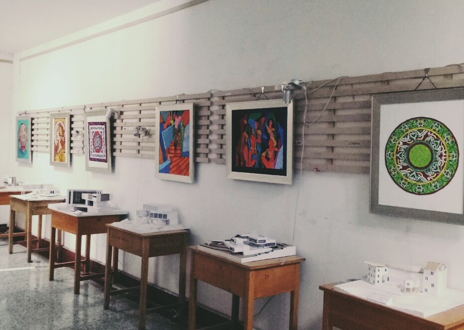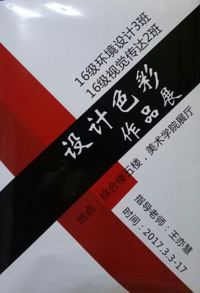 2017年3月3日至3月17日,2016级环境设计3班携手视觉传达设计2班在综合楼五楼美术公司展厅共同举办《设计色彩》课程作业展。此次课业展中共展出装饰色彩作品七十余幅,主要的图案设计元素来自敦煌壁画藻井图案、传统刺绣纹样和现代插画等;作品使用的材料也比较多元化,主要有纸浆、沥粉和综合材料。本次展览是公司“以展促学”特色教学的集中展示,也是对新生教学成果的一次验收和评估。通过展览有效的促进了员工专业基础课程的创作兴趣以及创新精神,增强了员工对于自己设计作品的展示自信,也拓宽了师生、员工之间的学习交流渠道,同时也充分展示了公司丰富的校园文化。