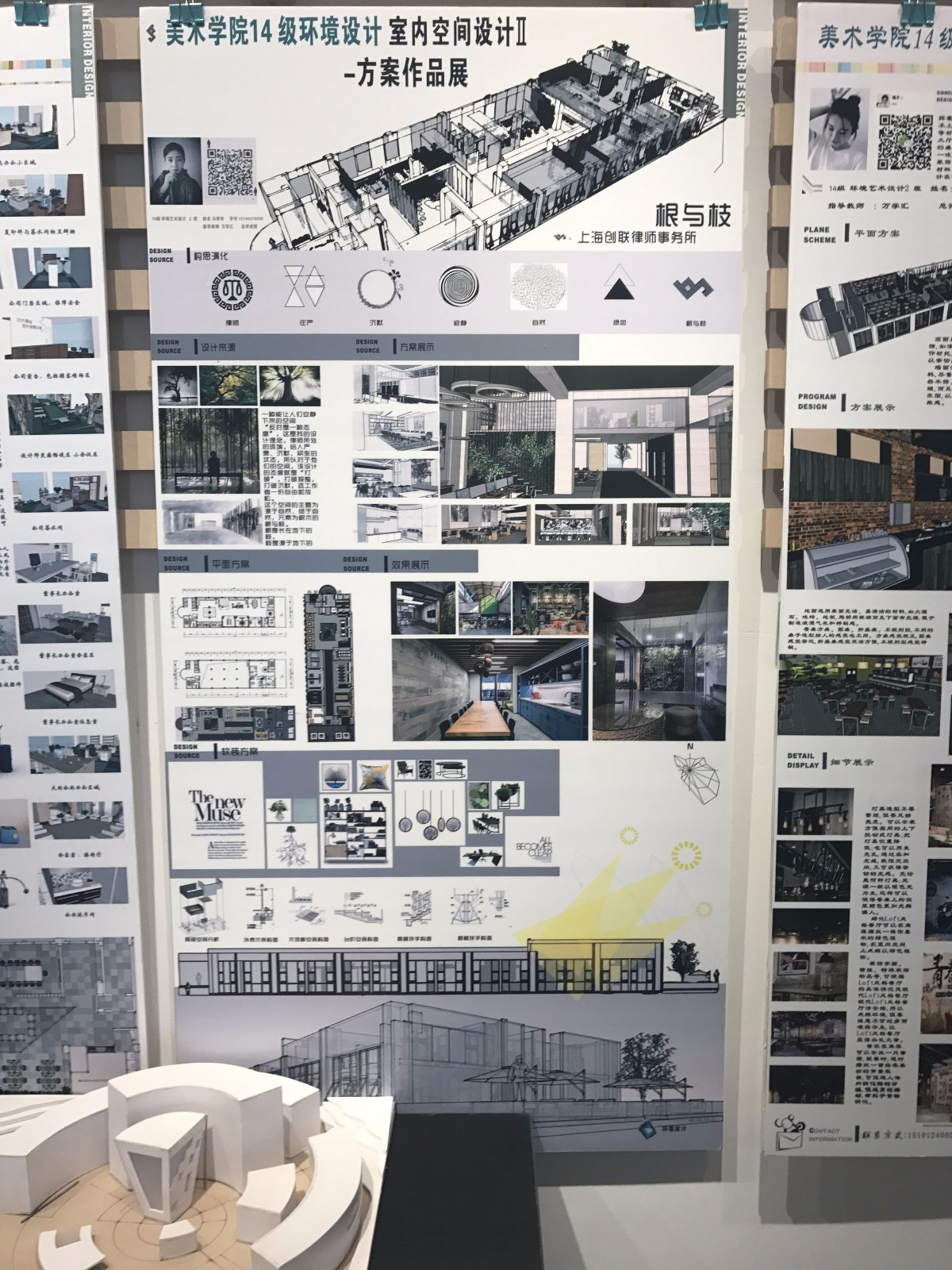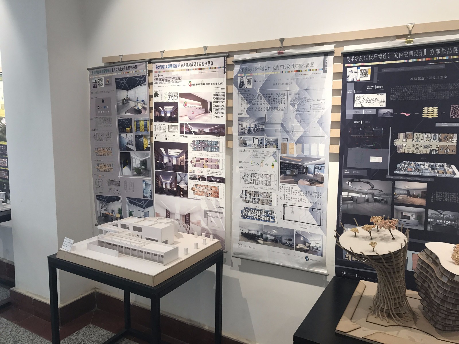 为响应美术公司“以展促教,以赛促学”的教学理念,2017年6月13日,美术公司2014级环境设计(室内设计方向)一、二班在综合楼5楼美术公司展廊举办了课程作业展。