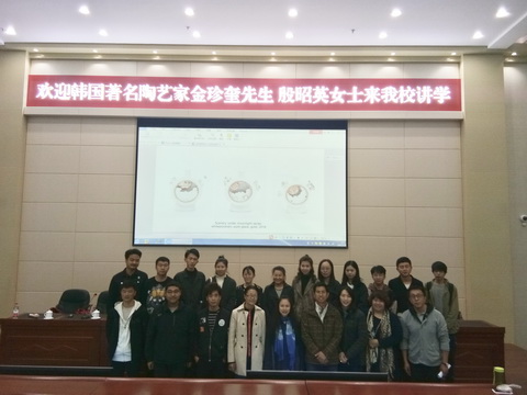 两位艺术家就韩国的传统陶瓷文化、陶瓷装饰“粉青沙”和自己的创作技艺、理念给师生们做了详细的介绍。现场互动时师生们提问、讨论非常热切,与艺术家们尤其在中韩陶瓷文化在历史上传播、影响问题上进行了深入、详细地交流、探讨。公司师生的学习热情和专业精神也深深感动了讲学艺术家。讲座结束后,两位艺术家参观了美术公司装饰艺术实训中心室,在陶艺工作室亲自做了拉坯示范。