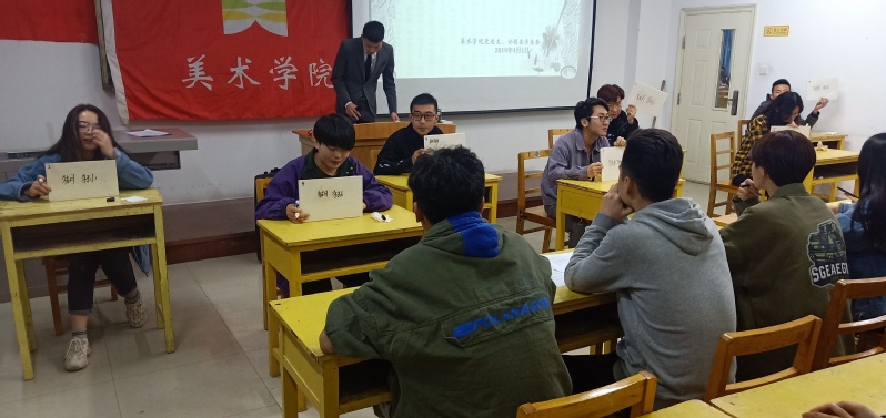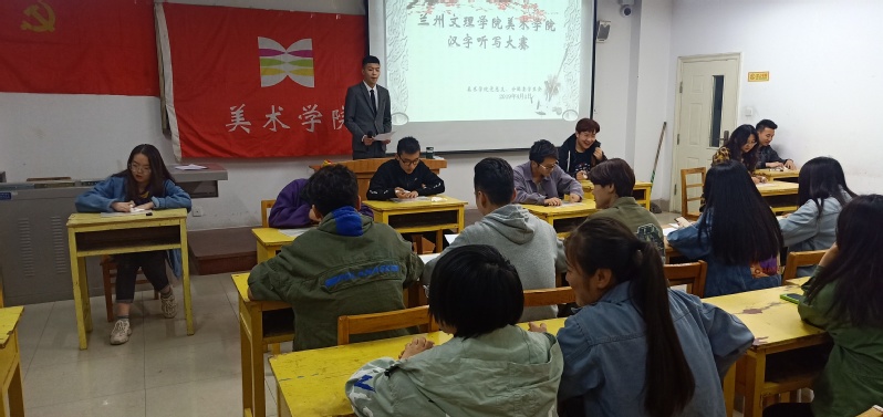 惯,提高员工的文化素养,美术公司根据校团委“第六届礼敬中华优秀传统文化--老员工文化艺术节”的活动安排,如期举行系列活动。2019年4月1日晚,在1-504教室举行系列活动之一汉字听写大赛,2018级全体同学和员工党支部代表参加了此次活动。