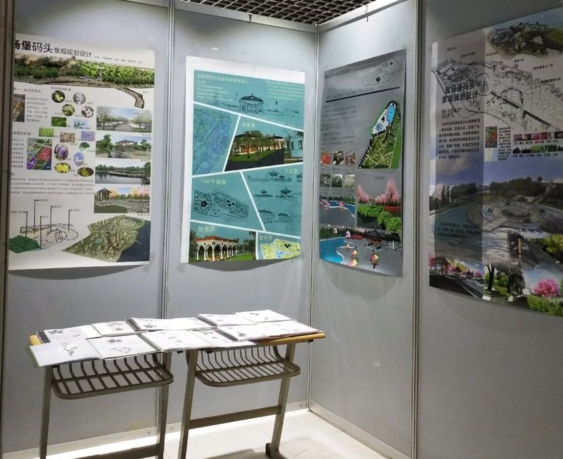 2019年5月6日至13日,美术公司2016级环境设计专业《现代景观设计理论》课程作业交流展在美术公司五楼展厅展出。此次展览共展出员工课程作业作品40余件,作品内容为盐场堡码头景观规划设计,同时展出植物标本采集册。盐场堡码头景观规划设计在场地调研基础上,对基地自然条件、文化背景充分探究,设计出符合兰州城市特色和地域文化的盐场堡码头景观。