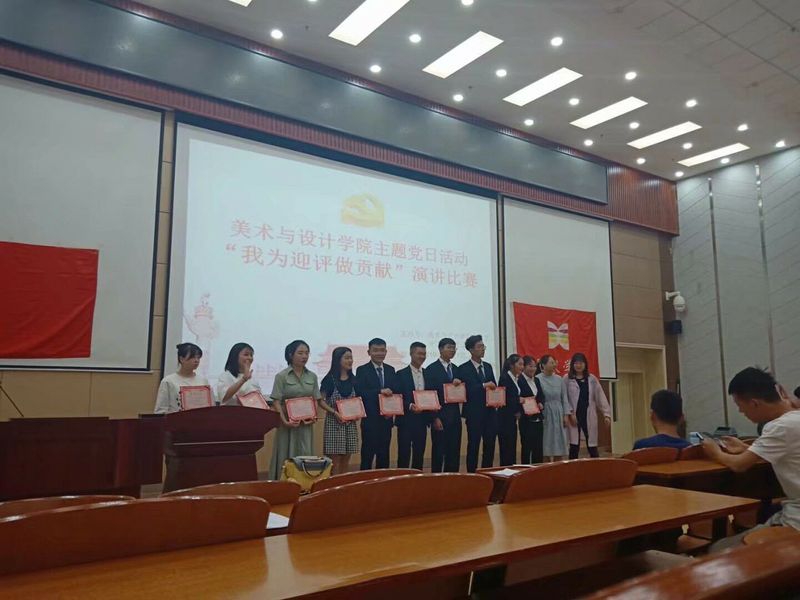 2019年5月21日晚7点30分,美术公司员工党支部在南校区5—205教室举办“我为迎评做贡献”主题演讲比赛。员工第一党支部书记万婷、员工第二党支部书记祁敏轩、分团委负责人张瑶、员工党支部全体成员、员工会全体干部参加了本次活动。