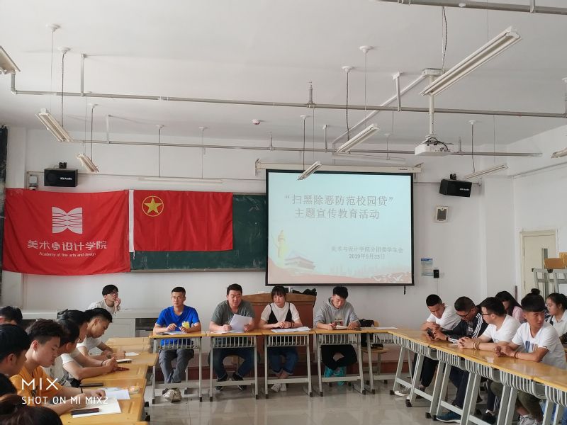 2019年5月23日中午,美术公司学工办以“扫黑除恶防范校园贷”为主题在1-504教室召开员工工作会议。