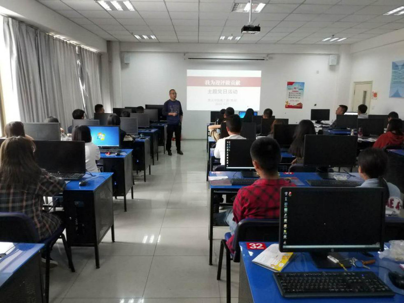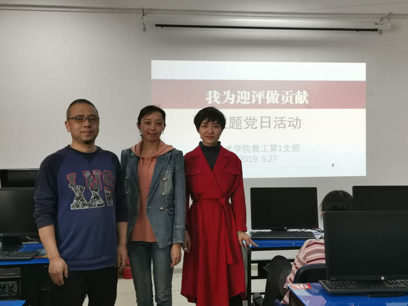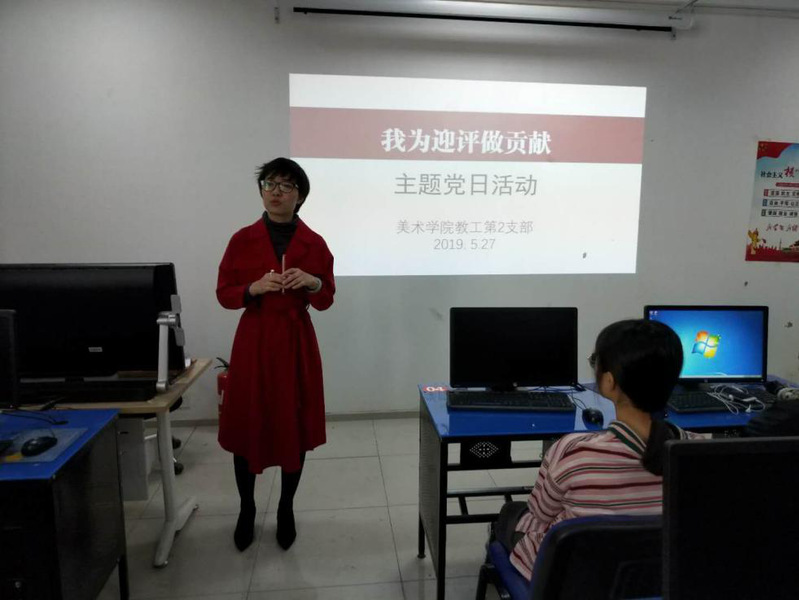 2019年5月27日美术公司教工第一党支部在环境设计实训室为17视觉传达专业的同学们开展了“我为迎评做贡献”主题党日活动,活动由支部书记王亦慧主持。