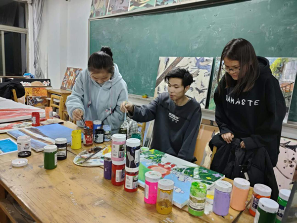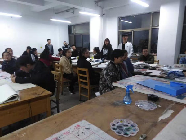 11月11日至12月2日,奕鸣美术协会在音乐楼606教室进行综合材料装饰画教学,协会负责人孙继龙、孙祺,2018级视觉传达设计丁涛,团支部书记融花,油画部部长尕让交,漫画部部长宋洪宇,为新成员进行系统的讲解和指导。