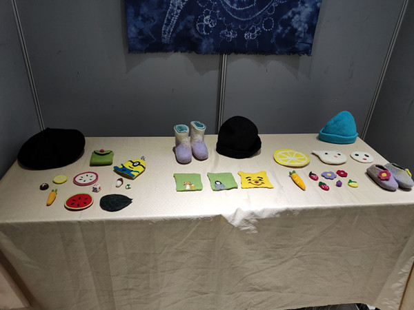 此次展览为2017级美术工艺美术方向《纤维艺术》课程的教学成果汇报,共展出了同学们的扎染作品三十余件,毛毡作品二十余件。扎染与擀毡都属于国家非物质文化遗产的传统手工技艺,在我国有着悠久的传承历史,但随着时代的变迁,社会生活的改变,这些曾经具有辉煌历史的传统技艺正面临“生死考验”。为了使之得到更好的保护和传承,公司将扎染艺术和擀毡艺术作为纤维艺术课程的重要组成部分引入课堂。在教学过程中,同学们不仅认识和了解了我国优秀的传统艺术文化,同时也在同学们的创新实践下,使传统手工技艺焕发出新的活力。