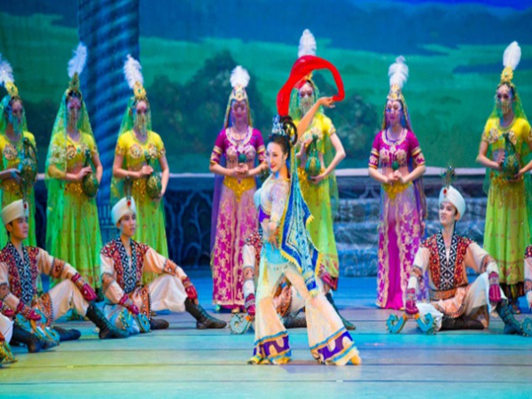 《丝路花雨》是以举世闻名的敦煌壁画和丝绸之路为题材,以和平、友谊为主题,通过敦煌画工神笔张和女儿英娘与波斯商人患难与共、生死相交的故事,以别具一格的艺术风格,将瑰丽多彩的敦煌壁画搬上舞台。