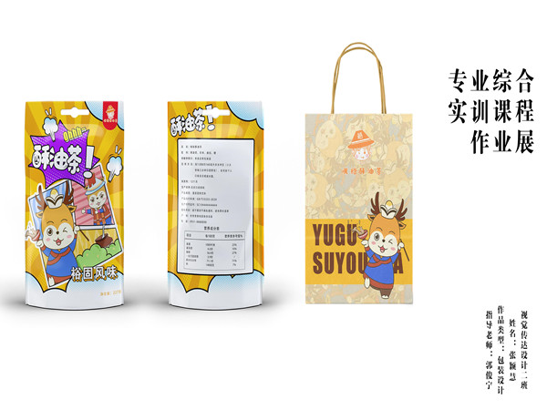 《专业综合实训》是视觉传达设计专业的重要专业课程。课程内容主要包含三个方面内容:品牌形象设计、商品包装设计、文创产品设计等实训项目。其中品牌形象设计项目包含品牌标志设计、品牌IP形象设计、品牌产品包装设计、图形延伸设计、插画设计等内容。此选题要求员工以甘肃少数民族传统文化为出发点,挖掘优秀文化元素,结合现代设计方法、理念为少数民族地区开发地方食品、工艺品等品牌的设计。在项目实训中,员工既感受少数民族文化的优秀成果,提升了同学们对甘肃文化自信,也体会到现代设计前沿知识的重要性。