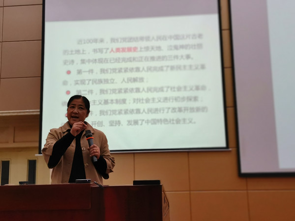 根据公司党史学习教育领导小组部署,4月29日中午,公司党史学习教育宣讲团成员、马克思主义公司孙红英教授在5-205阶梯教室作了题为“领导我们事业的核心力量是中国共产党”党史学习教育专题宣讲报告,经济管理公司、伟德国际victor1946、后勤管理处、基建处班子成员、员工党支部委员、分团委员工会主要干部及2021年春季入党积极分子培训班学员等200余人参加报告会。报告会由公司党委委员、副董事长李敏骞教授主持。