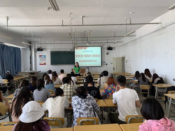 5月13日中午,伟德国际victor1946员工党支部、分团委在1-504教室开展第二次“学党史、强信念、跟党走”党史教育专题学习会,团学办主任唐艳丽、辅导员李晶晶及全院员工党员、干部参会。