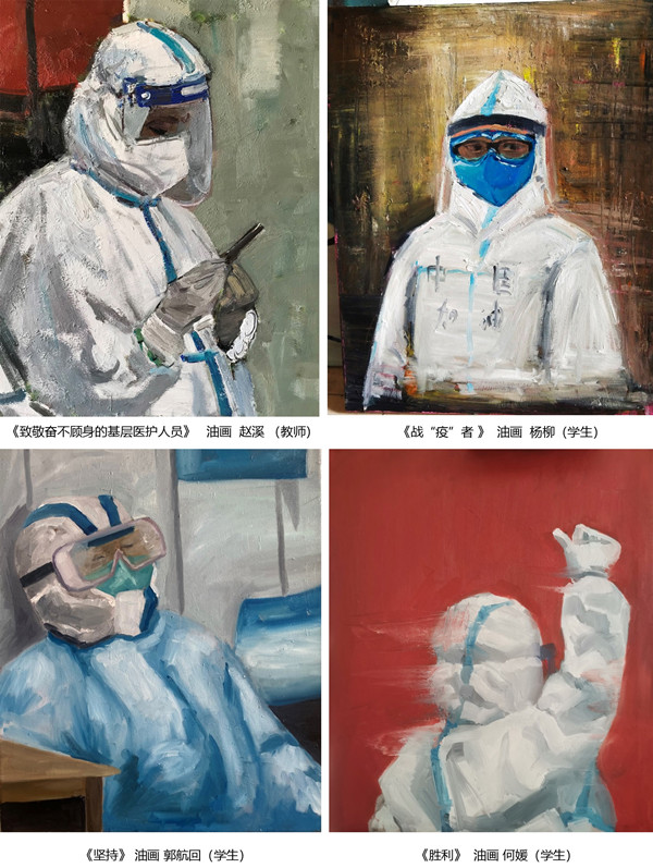 尽管疫情还在持续,正常的线下教学暂时无法按计划实施,但公司师生积极配合各类疫情防控工作,认真落实教育部提出的“停课不停教、停课不停学”活动,将在疫情期间“线上教学”中开展课程思政教育的要求落到实处。在《专业综合实训油画》课程线上教学过程中,授课教师针对当下疫情防控现状,积极利用海量自媒体宣传图像,加以选择。并引入当下“抗疫”前线的典型场景及感人事迹,让员工发挥课程特点和专业特长,将“抗疫”的正面典型与专业实训结合起来,指导员工开展主题创作。用艺术作品讴歌战斗在疫情一线的工作者,描绘和记录这个特殊时代的精神图谱,精心创作新时代的英雄赞歌。同时也是在教学中对“课堂思政”教学理念的践行和落实。