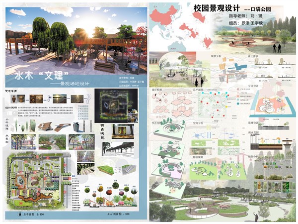 课程通过理论讲解与实践设计结合的方式,提升了同学们对场地景观设计的全过程认知。作业以校园西侧指定场地为设计对象,首先对场地现状进行前期基础调研,其次对其功能需求做分析与提取,最后在此基础上结合理论所学知识进行具体景观设计,力求融功能性、美观性、生态性于一体,营造具有活力、吸引力、内涵丰富的校园景观空间。