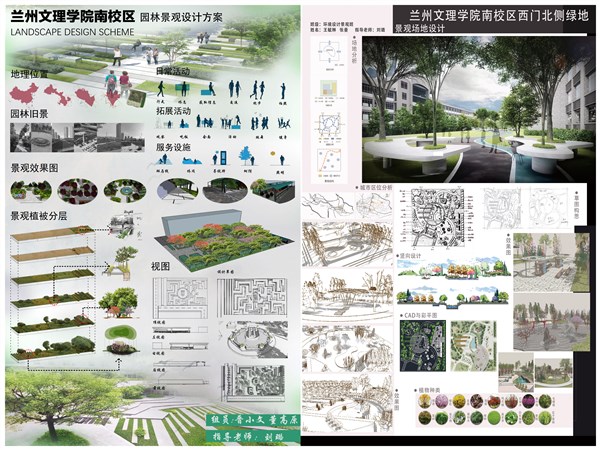 课程通过理论讲解与实践设计结合的方式,提升了同学们对场地景观设计的全过程认知。作业以校园西侧指定场地为设计对象,首先对场地现状进行前期基础调研,其次对其功能需求做分析与提取,最后在此基础上结合理论所学知识进行具体景观设计,力求融功能性、美观性、生态性于一体,营造具有活力、吸引力、内涵丰富的校园景观空间。