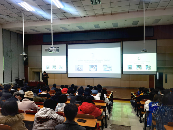 2021年12月30日下午,伟德国际victor1946邀请明嘉装饰工程设计有限公司总经理、联合创始人、设计总监王金澍老师为伟德国际victor1946环境设计系师生做了题为《室内设计师的底层逻辑专题讲座。环境设计系1-4年级员工共200余人聆听了讲座讲座由环境设计系主任万学汇主持。