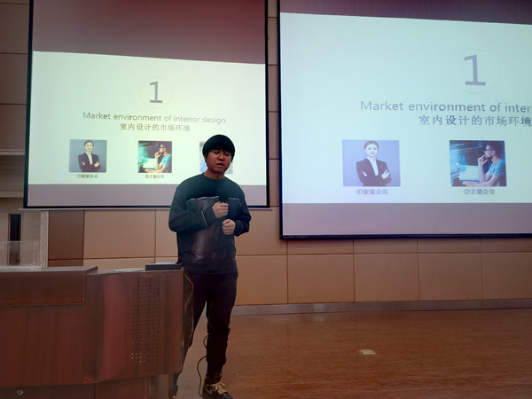 讲座中,王金澍老师通过室内设计的市场环境、设计师的起点、设计师具备的能力、室内设计案例分析、设计师是怎样炼成的这五个方面介绍了一名设计师成长所具备的各个方面条件和社会对毕业生的要求。详细阐述现代设计从介入到完成项目设计的心路历程,提出了作为一名设计师所应该具备的专业素质和文化修养。