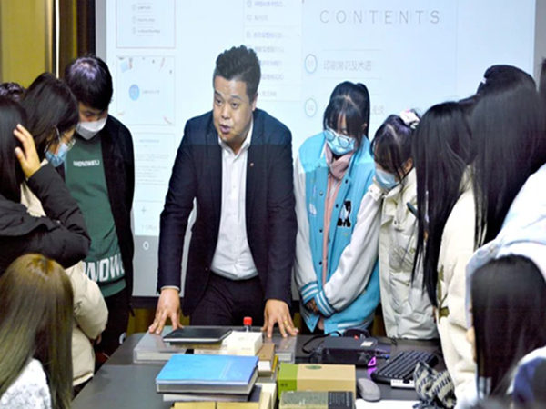 《印刷工艺》课程是一门专业化程度高、实践性强的专业基础课。课程主要是对平面设计方案如何转化为纸面印刷品过程中的各个程序、环节流程,及印刷材料、装订形式、各种印刷工艺特点的认识与学习。通过企业教学同学们了解到当下最新印刷材料、工艺、装订形式等,开拓了员工的眼界,也有助于员工在设计工作中更多考虑到印刷环节的实现和提高印刷效果效率,对印前设计工作有较大的帮助。