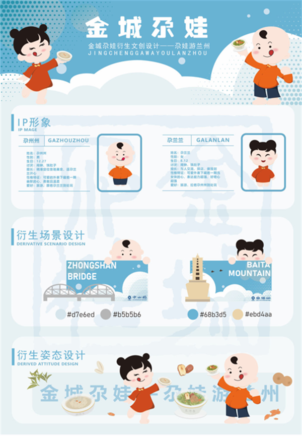 本次课程作业展选题包括悠游兰州文创产品设计、水墨丹霞文创产品设计、定西养生文创设计、九香玫瑰文创设计四个主题方向。在实践环节中,以当前市场需求与政策为导向,结合实际项目案例,提高员工适应社会需求的设计能力,加强了员工原创意识的培养以及创新创意能力的提升,并规范了设计流程,奠定了良好的职业素养。
