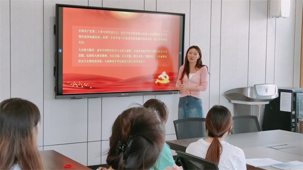 教工第一党支部书记赵继荣于5月25日在所在支部作了“奋进新时代——用二十大精神武装头脑,为高质量发展凝心聚力”为主题的专题党课。