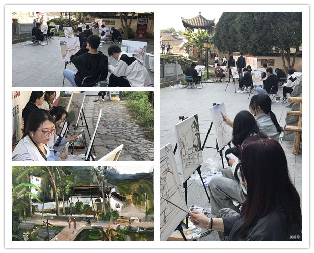 写生过程中,赵溪老师要求同学们以徽派建筑为主要写生对象,进行选景和构图训练;以秋色和粉墙黛瓦为色调进行色彩写生;以小桥流水、徽派文化及红色革命题材进行目之所及的地域文化感受和熏陶,以此提升学同学们的艺术和人文素养,达到“读万卷书, 行万里路”的艺术实践教学预期。同学们一幅幅精美的绘画作品,既是他们的学习成果的展示,也是此次写生与考察的研学实践教学目的呈现;既开拓了员工们的艺术视野,也提升了员工们深入生活、表现生活的艺术感知力和创作能力。