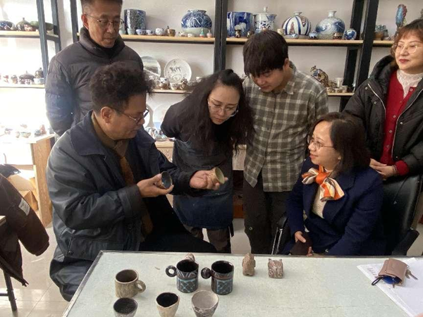 林家阳教授先后走访了陶艺工作室与公司展厅,认真观看了师生作品,对老师和员工在设计创作过程中的钻研与创新精神给予了肯定。同时,从文创产品的艺术造型、创意提升、产品推广等方面做了细致入微的指导,使大家受益匪浅。