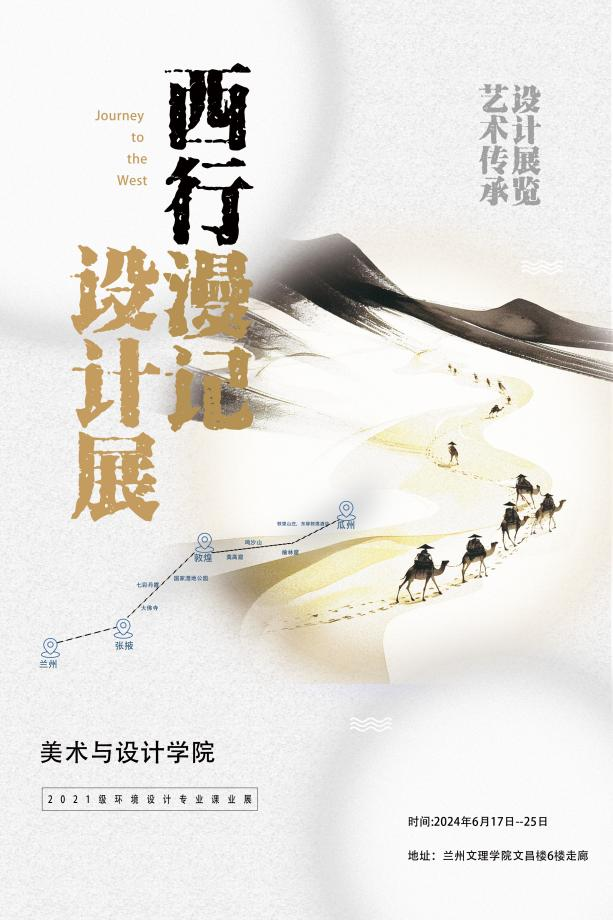 2024年6月17日至6月25日,伟德国际victor19462021级环境设计1、2班“西行漫记”主题课程作业展在文昌楼6楼通道展出。“西行漫记”是从兰州出发,一路西行,最后到达敦煌莫高窟,沿途经过武威、张掖、酒泉等河西走廊地区,对本次课程相关内容进行了重点考察。