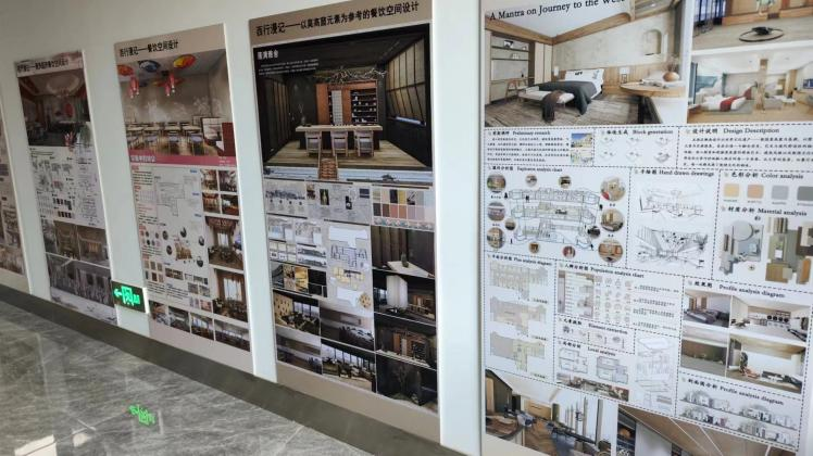 本次课程作业展是《西北地区建筑室内考察与应用设计》与《甘肃地区景观考察与应用设计》两门课程外出考察和课程学习的成果总结,课业展上的作品体现了西北地区深厚的文化底蕴和独特的地域特色。从西北的自然风光、历史文化、民俗风情等方面汲取灵感,传统工艺与现代设计、艺术与科技进行有机融合,创作出了一批既有传统韵味又具现代感的设计作品。