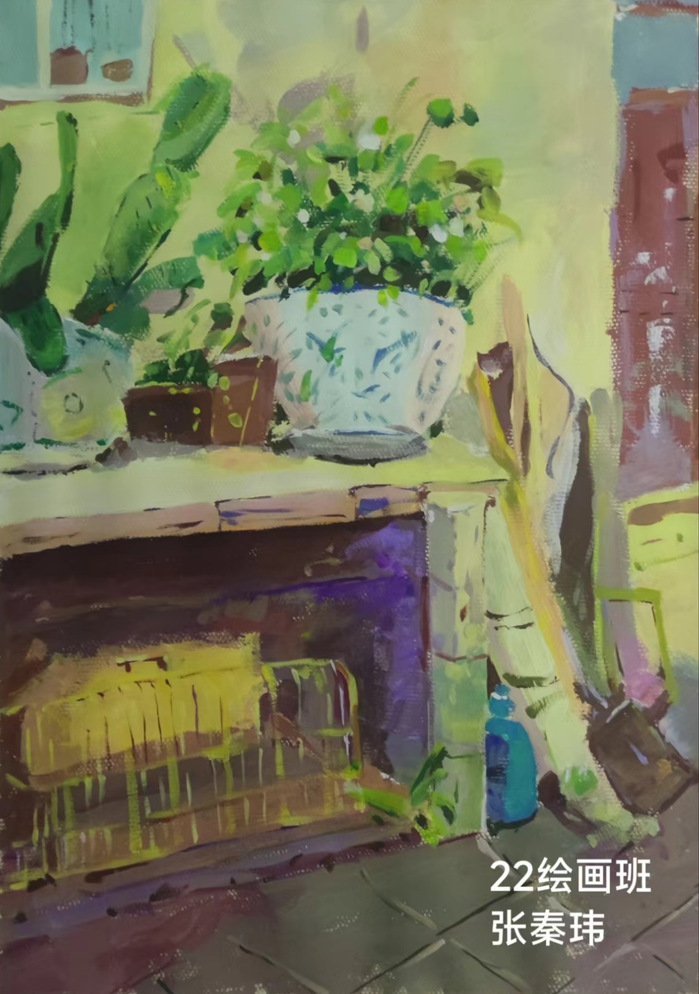 (图片为2022级绘画专业张秦伟作品《小城一角》)