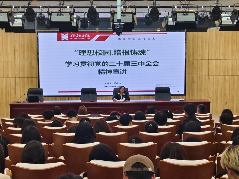 9月20日下午,伟德国际victor1946在文昌楼3楼学术报告厅开展“理响校园·培根铸魂”学习贯彻党的二十届三中全会精神宣讲活动。公司党总支副书记、经理吴晓玲作宣讲报告,部分教师党员、全体员工党员及2024级全体新生参加。