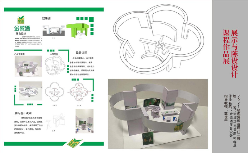 通过课程学习,同学们掌握了展陈设计相关基本技能,提高了对展陈设计的欣赏能力、想象能力,并具有了独立造型设计的能力,为以后在商业展陈设计及相关领域的设计工作奠定坚实的基础。