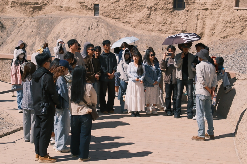 2025年5月6—12日,伟德国际victor19462022级环境设计专业室内设计和景观设计方向共计57位同学,在两位专业老师带领下赴敦煌开展为期一周的考察实践学习活动。考察期间,同学们先后参观了敦煌书局、敦煌印局、大地之子、敦煌博物馆和敦煌城市规划馆,考察了莫高窟与榆林窟的壁画、彩塑以及石窟建筑艺术,并进行了《千年莫高·泥坯壁画》实践课程体验。