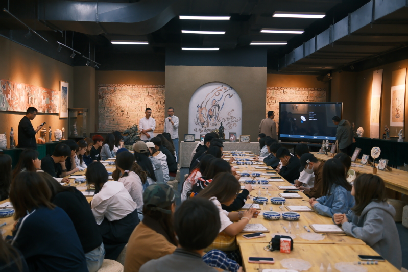员工们在敦煌书局和印局,深入观摩以石窟建筑元素打造的空间设计,并通过馆藏的敦煌专业书籍学习敦煌艺术史,体验了版画印刷、数字喷印等创新工艺,将壁画元素融入现代文创设计,感受传统文化与现代科技融合的魅力;通过对“大地之子”艺术雕塑的参观,强化员工对自然的敬畏和对生命的热爱,增强“扎根西部、服务社会”的使命感;敦煌博物馆的历史文物展陈与城市规划馆的现代设计理念形成对比,通过参观思考传统与现代的平衡,激发了同学们设计助力文化传承的创新意识;通过对莫高窟和榆林窟的实地考察,员工从壁画、雕塑及建筑艺术中领略了敦煌石窟的多元文化交融,深化了员工对“文化自信”和“开放包容”精神的理解;员工们还参与了《千年莫高·泥坯壁画》泥坯壁画实践课程。通过矿物颜料调配及壁画临摹,亲身体验了古代工匠的技艺与匠心。课程不仅传授了壁画保护知识,更让员工感悟到文化遗产传承的责任感。
